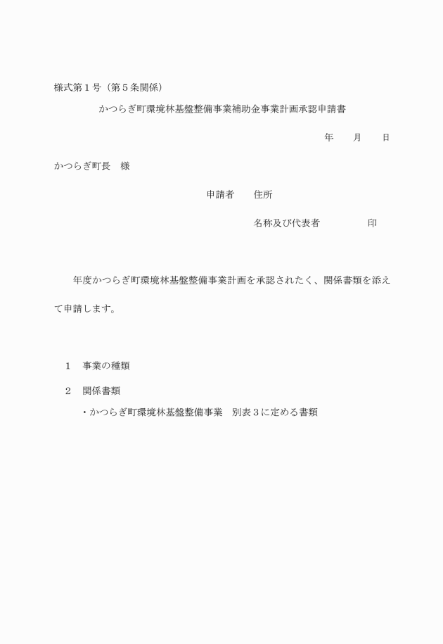 第10条 この補助金の交付決定後の事情により、補助金の変更交付を申請しようとする場合には、かつらぎ町環境林基盤整備事業補助金事業変更交付申請書(様式第3号)に変更事業計画書及び変更収支予算書を添付して、町長に提出しなければならない。
